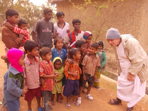 Si Ratnanabha Prabhu tinuturuan ang mga bata kung paano umawit ng Nitai