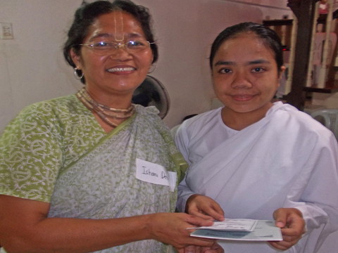 Si Ishani Devi Dasi ay namigay ng tagalog na libro ng Sri Chaitanya Saraswat