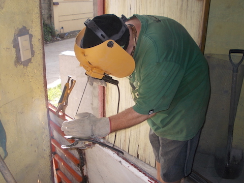 Muling binuo ni Ratnanabha Prabhu ang mga lumang donasyon na bintana at pinto.