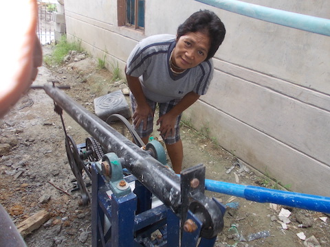Si Ishani Devi Dasi ay napakasaya sa bagong balon ng tubig at bomba ng tubig.